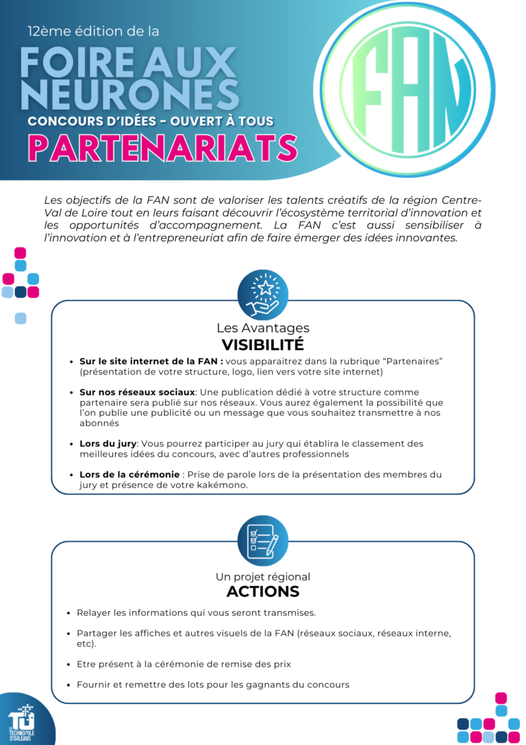 Vous souhaiter rejoindre le projet « La Foire aux Neurones » et ainsi participer à la valorisation des talents créatifs de la région Centre-Val de Loire tout en leurs faisant découvrir l’écosystème territorial d’innovation ?